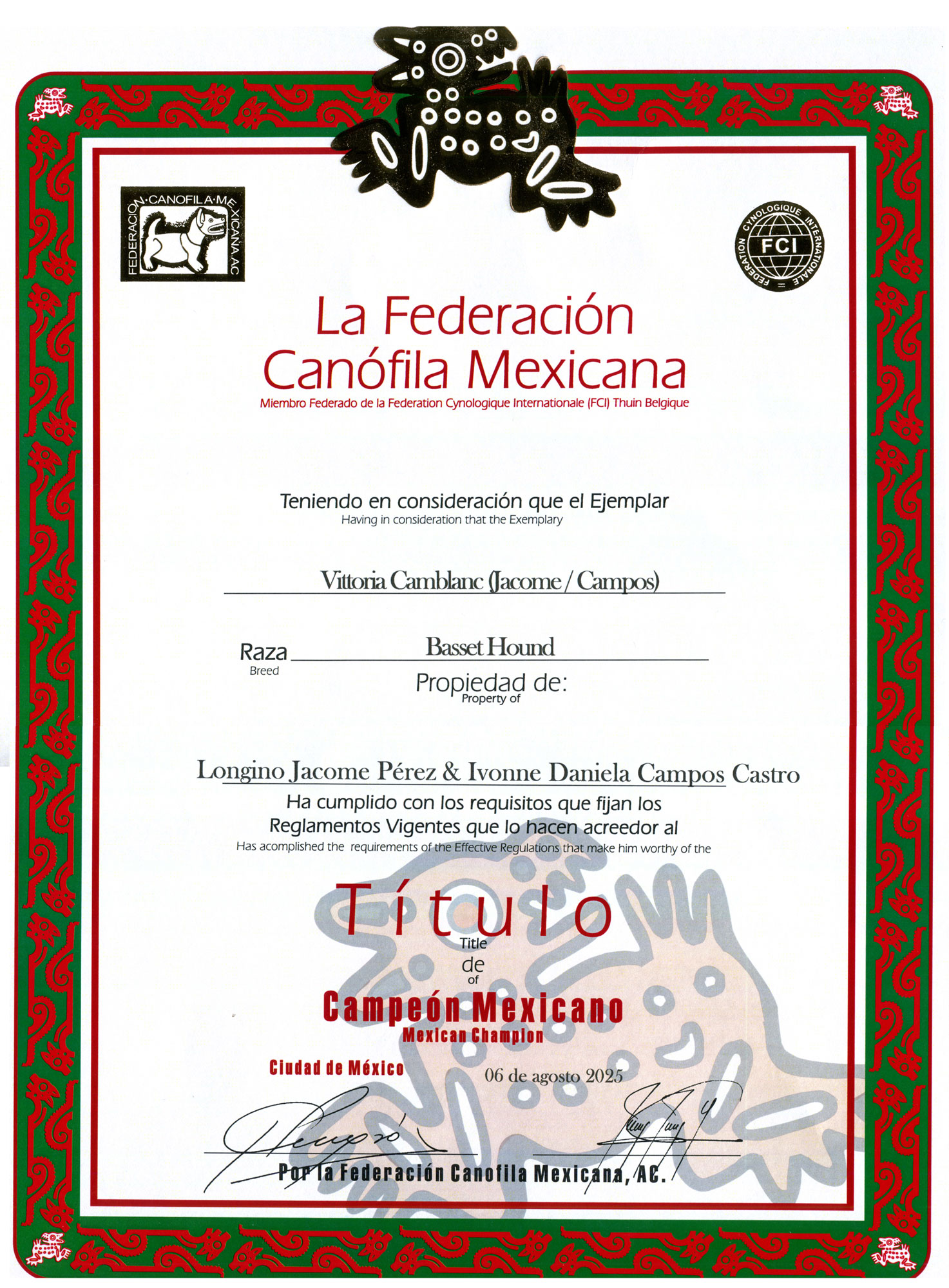4 Certificados de Aptitud al Gran Campeonato Mexicano